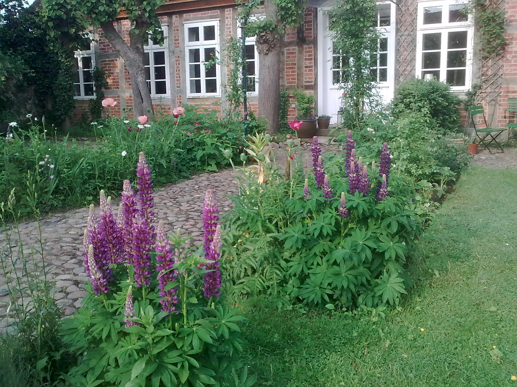 | Frühling im Innenhof | | Staudenrabatte mit Lupinen